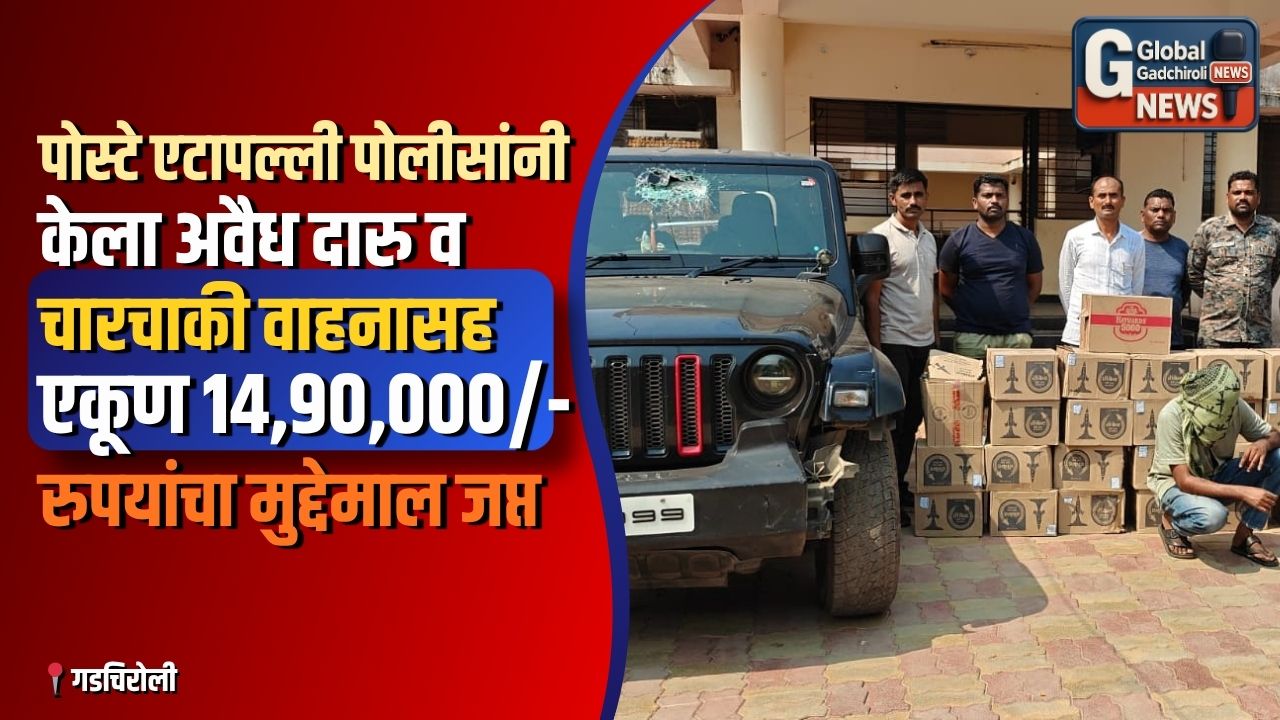 पोस्टे एटापल्ली पोलीसांनी केला अवैध दारु व चारचाकी वाहनासह एकूण 14,90,000/- रुपयांचा मुद्देमाल जप्त