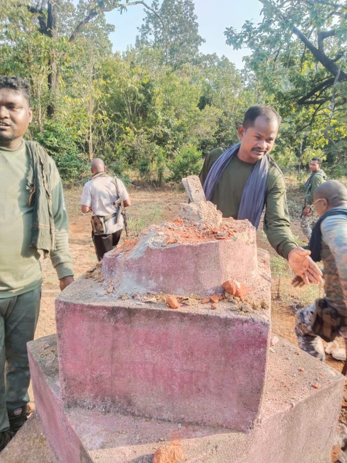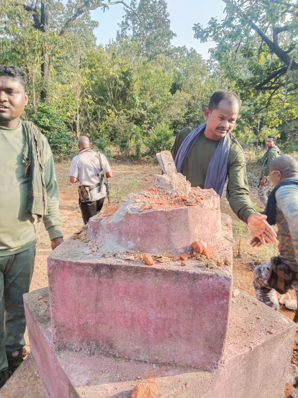 - माओवाददृष्ट्या अतिसंवेदनशील गडचिरोली जिल्हा, दुर्गम-अतिदुर्गम भाग असलेला ज्या ठिकाणी बरेच आदिवासी बांधव आजदेखील विकासापासून दूर आहेत, त्यांचा विकास साधावा व माओवाद्यांच्या कारवायांना आळा बसावा यासाठी गडचिरोली पोलिस दलाच्या वतीने ११ डिसेंबर २०२४ रोजी भामरागड उपविभागाअंतर्गत पेनगुंडा या ठिकाणी नवीन पोलिस मदत केंद्राची स्थापना करण्यात आली होती. शनिवारी पेनगुंडा पोलिस मदत केंद्राच्या हद्दीतील पेनगुंडा ते नेलगुंडा रस्त्यावर पेनगुंडा गावापासून सुमारे दोन किलोमीटर अंतरावर माओवाद्यांनी नवीन पोलिस मदत केंद्र निर्मितीच्या अगोदरच त्यांचे स्मारक बांधलेले आहे, अशी गोपनीय माहिती पोलिसांना मिळाली. वरीष्ठांच्या मार्गदर्शनात गडचिरोली पोलिस दलाच्या बीडीडीएस, प्राणहिता व विशेष अभियान पथक प्राणहिताच्या चार पथकांतील जवानांनी या परिसरात शोध अभियान सुरू केले. पेनगुंडा ते नेलगुंडा रस्त्यावर माओवाद्यांनी बांधलेले स्मारक दिसून आले. बीडीडीएस पथकाने या परिसराची कसून तपासणी केली व त्यानंतर विशेष अभियान पथकातील जवानांनी माओवाद्यांनी बांधलेले हे स्मारक उद्ध्वस्त केले. ही कामगिरी पोलिस अधीक्षक नीलोत्पल, अपर पोलिस अधीक्षक (अभियान) यतीश देशमुख, अपर पोलिस अधीक्षक (प्रशासन) एम. रमेश व अपर पोलिस अधीक्षक (अहेरी) श्रेणिक लोढा, पोलिस उप-अधीक्षक (अभियान) विशाल नागरगोजे, भामरागडचे उपविभागीय पोलिस अधिकारी अमर मोहिते यांच्या मार्गदर्शनात पार पाडली. यावेळी पोलिस अधीक्षक नीलोत्पल यांनी या भागात माओवादविरोधी अभियान तीव्र केले आहे. माओवाद्यांच्या प्रत्येक हालचालींवर लक्ष केंद्रीत केले आहे. अशा माओवाद्यांच्या स्मारकाला समाजात कुठेच स्थान नाही व त्यामुळे कोणीही असे बेकायदेशीर कृत्य करू नये, असे आवाहनही त्यांनी केले.