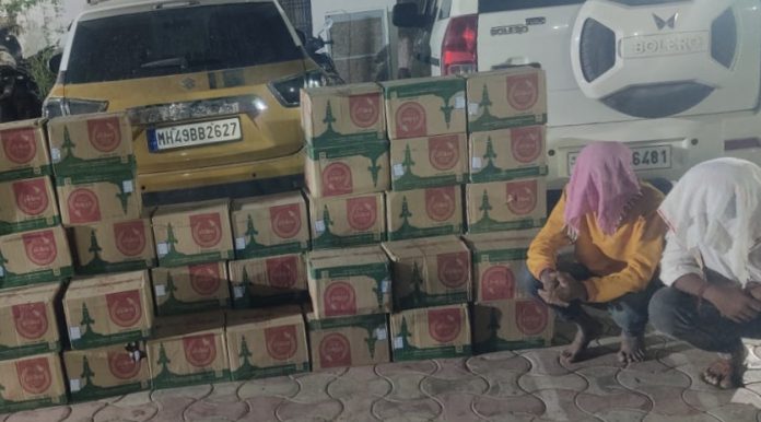 एक चारचाकी वाहन भरधाव वेगाने येताना दिसले. त्यावेळी पोलिसांनी वाहन चालकाला हात दाखवून वाहन थांबविण्याचा इशारा दिला. त्यानंतर पोलिस पथकाने वाहनाची जवळून तपासणी केली.वाहनाच्या तपासणी दरम्यान त्यात अवैध देशी व विदेशी दारू असलेल्या ५० पेटी (बॉक्स) किंमत अंदाजे ४ लाख रुपये आढळली.