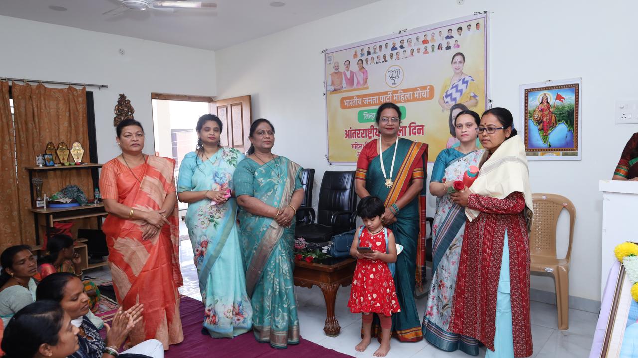भाजप महिला मोर्चा जिल्हाध्यक्ष गीता हिंगे यांच्या जनसंपर्क कार्यालयात महिलादिनाचे आयोजन करण्यात आले होते. यावेळी महिलांनी हिरीरीने सहभाग घेऊन कार्यक्रमाला उत्स्फूर्त प्रतिसाद दिला. यावेळी कार्यक्रमाला प्रमुख पाहुणे म्हणून वैशाली नरोटे, अर्चना नेते, यशोधरा उसेंडी तसेच डॉ .चंदा कोडवते उपस्थित होत्या. यावेळी विशेष म्हणजे जिल्ह्यातून विविध मंडळातून आलेल्या महिला पदाधिकाऱ्यांना गुलाबाचे फुल व भेटवस्तू देऊन सन्मान करण्यात आला. यावेळी नर्सिंग क्षेत्रात उत्कृष्ट कामगिरीबद्दल राष्ट्रपतींच्या हस्ते नर्सिंग क्षेत्रातील सर्वोच्च पुरस्कार समजला जाणारा फ्लाॅरेन्स नाइटिंगेल पुरस्कार देऊन गौरविण्यात आलेल्या गडचिरोलीच्या निवृत्त परिचारिका शालिनी निंबार्ते तसेच गोंडवाना विद्यापीठातून पत्रकारितेचे रितसर शिक्षण पूर्ण करून ग्लोबल गडचिरोली न्यूज पोर्टल यशस्वीपणे चालवत असलेल्या गडचिरोली जिल्ह्यातील पहिल्या महिला पत्रकार व नुकत्याच व्हॉईस ऑफ मिडिया महिला आघाडीच्या महाराष्ट्र प्रदेश उपाध्यक्ष म्हणून निवड झालेल्या तिलोत्तमा हाजरा, पती निधनानंतर एलआयसीमध्ये विशेष ओळख निर्माण करणाऱ्या, घराची धुरा स्वतःच्या खांद्यावर घेऊन मुलाच्या पाठीशी भक्कमपणे उभे राहणाऱ्या सुनीता आलेवार अशा कर्तृत्वान महिलांचा भाजप महिला मोर्चातर्फे शाल व श्रीफळ देऊन सत्कार करण्यात आला. महिलांनी आजच्या काळात कुठेही मागे न राहता समोर येऊन आपल्या आवडीच्या क्षेत्रात नाव कमवावे, महिलांनी आजच्या घडीला कमजोर न बनता प्रत्येक समस्येला धैर्याने तोंड द्यावे. आज सर्वत्र जगभर महिलादिन साजरा होत आहे. आज भारतातील स्त्री प्रत्येक क्षेत्रामध्ये प्रगतीपथावर आहे . शेतीतील मजुरापासून ते देशाच्या राष्ट्रपती पदापर्यंत तसेच शिक्षिका, डॉक्टर ,पोलीस, पोलिस, तलाठी, ग्रामसेविका,पायलट ,खेळाडू अशा अनेक क्षेत्रांत महिलांनी मोलाची कामगिरी बजावली आहे. आपल्या भारत देशामधील अनेक महिलांनी विविध क्षेत्रात आपले नाव कमावले आहे. त्यामुळेच कुणाच्या आधाराची वाट न बघता महिलांनी समोर येऊन स्वतःला सिद्ध करायला हवे, असे प्रतिपादन भाजप महिला मोर्चा जिल्हाध्यक्ष गीता हिंगे यांनी केले.