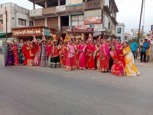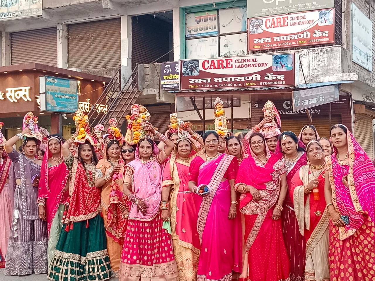 राजस्थानी महिला मंडळाने गडचिरोली शहरात पारंपरिक वेशभूषेत काढली गणगौरची मिरवणूक