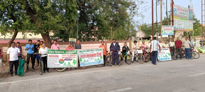 गडचिरोली, ता.४: जागतिक सायकल दिनानिमित्त गडचिरोली शहरात ३ मार्च रोजी सकाळी ६ वाजता सायकल रैली चे आयोजन करण्यात आले . या रॅलीत शहरातील नागरिक शालेय विद्यार्थी, शासकीय कर्मचारी,शिक्षण विभागातील कर्मचारी वृंद तसेच इतरही ज्येष्ठ सायकल स्नेही सहभागी झाले होते . सायकल चालवा, निरोगी रहा आणि पर्यावरण वाचवा असे आवाहन करत सकाळी ठीक ६ वाजता नियोजनानुसार इंदिरा गांधी चौकापासून रॅली सुरू झाली.या रॅलीस गडचिरोलीचे प्रथम सायकल दुरुस्ती दुकान, पटेल सायकल डिलर कमलेश पटेल यांनी हिरवी झेंडी दाखवून सायकल रॅलीस प्रारंभ केला या वेळी जलाराम सायकल डिलर हे उपस्थित होते.सदर रॅली कारगिल चौक,आय.टी.आय चौक, जिल्हा रुग्णालय,टी पाॅईन्ट, जिल्हाधिकारी कार्यालय, स्मृती उद्यान,एल.आय.सी.चौक,परत आय.टी.आय चौकापासून गेस्ट हाऊस मार्गे शिस्तबध्द पद्धतीने रॅली काढण्यात आली.दरम्यान सहभागी शेकडो सायकल स्नेहींचा उत्साह वाखाणण्याजोगा होता. ७ वाजता रॅलीचा समारोप झाला.यावेळी प्रामुख्याने ज्येष्ठ सायकल प्रेमी मनोहर निखाडे, आयोजक उदय धकाते सचिव सायकल स्नेही मंडळ गडचिरोली, प्रा.विलास पारखी,कार्याध्यक्ष, झाडीबोली साहित्य मंडळाचे अध्यक्ष डॉ. चंद्रकांत लेनगुरे,प्राचार्य सुचिता कामडी,प्रा.सुनिता साळवे,योगिताताई दशमुखे,सौ.मिराताई बिसैन- चौधरी,श्री. केशव दशमुखे,विजयराव साळवे,प्रा.देवानंद कामडी, मुख्याध्यापक मनोज कवठे,प्रा.ज्ञानेश्वर धकाते,प्रा.शेखर गडसुलवार,प्रा.विजय कुतरमारे,प्रा.सोनवने,प्रा.ठाकरे, पुरुषोत्तम ठाकरे,प्रा.आखाडे,प्रा.अनिल शेट्ये,प्रा.अरूण पालारपवार,प्रा.हिवरकर,छबुताई राऊत ,तनुजा राऊत, माधुरी बोरकर आदी सायकल स्नेही हजर होते.समारोप स्थळी सहभागी सायकल स्नेहींना सन्मानपत्र देऊन सन्मानित करण्यात आले.आजच्या सायकल रॅली यशस्वी करण्यासाठी मार्गदर्शक केशवराव दशमुखे गुरूजी,जलाराम सायकल डिलर , विजय साळवे तसेच सर्व सायकल सदस्यांनी मोलाचे सहकार्य केले. सायकल स्नेही मंडळाचे सल्लागार डॉ. शिवनाथ कुंभारे आणि ग्रामगीताचार्य बंडोपंत बोढेकर यांनी सायकल रॅली यशस्वी केल्याबद्दल सदस्यांचे अभिनंदन केले आहे.