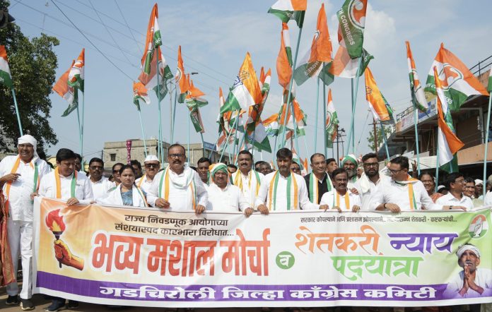 विधानसभा निवडणुकीतील मतचोरीची चौकशी करावी यासाठी काँग्रेस पक्षाने १२) जूनपासून राज्यभर मशाल मोर्चे काढण्याचे निश्चित केले होते. त्यानुसार गडचिरोलीत प्रदेशाध्यक्ष हर्षवर्धन सपकाळ यांच्या नेतृत्वात मशाल मोर्चा व शेतकरी न्याय पदयात्रा काढण्यात आली. यावेळी काँग्रेस पक्षाचे विधिमंडळ नेते विजय वडेट्टीवार, खासदार डाॅ. नामदेव किरसान, खासदार प्रतिभा धानोरकर, AICC चे सचिव व सहप्रभारी कुणाल चौधरी, माजी मंत्री अनिस अहमद, आमदार अभिजित वंजारी, माजी आमदार सुभाष धोटे, गडचिरोली काँग्रेस कमिटीचे अध्यक्ष महेंद्र ब्राह्मणवाडे यांच्यासह काँग्रेस पदाधिकारी व कार्यकर्ते मोठ्या संख्येने उपस्थित होते. यावेळी बोलताना हर्षवर्धन सपकाळ पुढे म्हणाले की, आपण सतत गडचिरोलीचा दौरा करतो असा टेंभा मुख्यमंत्री देवेंद्र फडणवीस मिरवत असतात पण ते गडचिरोलीच्या विकासासाठी नाही तर सुरजागडच्या लोह खाणीतून मिळणाऱ्या मलईतून स्वतःच्या तुंबड्या भरण्यासाठी येतात. स्टिल सीटी करण्याच्या नावाखाली गडचिरोलीतील शेतकरी, आदिवासी, शेतमजूर, स्थानिकांवर सुरा फिरवत आहेत. फडणवीस यांना गडचिरोलाचे फडणवीसस्थान करायचे आहे. सुरजागडच्या खाणीला विरोध करू नये म्हणून हॉस्टेलमध्ये राहणाऱ्या विद्यार्थ्यांकडून खाणीला विरोध करणार नाही, मोर्चात सहभागी होणार नाही असे लिहून घेतले जाते. विरोधात बातमी छापली तर कारवाई केली जाते. मुंबई ही मराठी माणसाची, कष्टकरी, गिरणी कामगारांची होती पण आज मुंबईत मराठी माणूस दुर्बिण लावून शोधावा लागतो तीच परिस्थिती गडचिरोलीची होणार आहे. प्रदुषण वाढेल, आपल्या संस्कृतीला धोका पोहचेल आणि या खाणीमुळे स्थानिक लोक हद्दपार होऊन परराज्यातील लोकांचे वास्तव्य वाढेल अशी भिती त्यांनी व्यक्त केली. काँग्रेस पक्षाचे नेते आमदार विजय वडेट्टीवार म्हणाले की, ‘तिघे भाऊ महाराष्ट्र लुटून खाऊ’, असे भाजप युती सरकारचे सुरू आहे. शेतकऱ्यांकडे सरकार दुर्लक्ष करत आहे. सर्वात जास्त शेतकरी आत्महत्या महाराष्ट्रात होत आहेत. कर्जमाफी देत नाहीत, कर्जमाफीसाठी पैसे नव्हते तर घोषणा का केल्या? शेतकऱ्यांशी बेईमानी करणाऱ्या महायुती सरकारला धडा शिकवावाच लागेल. लाडक्या बहिणींचा विश्वासघात केला, २१०० रुपये देण्याची घोषणा केली पण आता १५०० रुपयेही मिळणे अवघड झाले आहे, ५०० रुपये हातात टेकवत आहेत. सरकार कितीही सांगत असले तरी लाडकी बहिण योजना बंद करण्याचा त्यांचा डाव आहे. भाजप युती सरकारने शेतकरी लाडक्या बहिणींची फसवणूक केली आहे, असेur वडेट्टीवार म्हणाले. दरम्यान आज (१२ जून २०२५) दुपारी अहमदाबाद येथून लंडनला जाणारे एअर इंडियाचे विमान कोसळून भीषण अपघात झाला आहे. या विमानात २४२ प्रवासी व क्रू मेंबर होते. ही घ