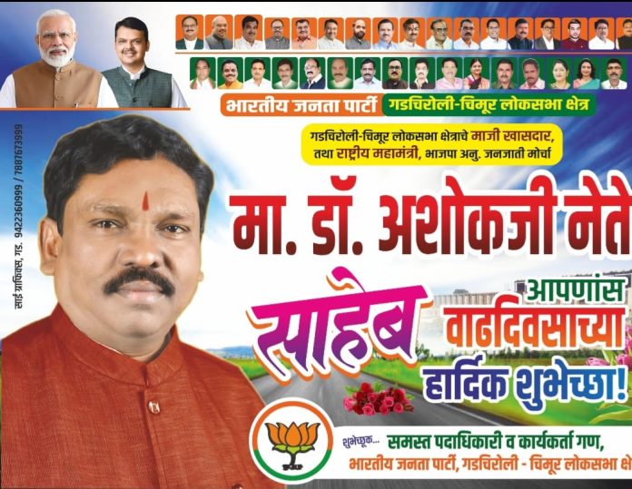 गडचिरोली, ता.३० : भाजपच्या अनु. जनजाती मोर्चाचे राष्ट्रीय महामंत्री तथा माजी खासदार डॉ. अशोकजी नेते यांचा उद्या दिं. १ जुलै २०२५ रोजी मंगळवारी वाढदिवस विविध सामाजिक उपक्रमांनी साजरा केला जाणार आहे. भाजपचे पदाधिकारी, कार्यकर्ते आणि मित्र परिवाराच्या पुढाकाराने या उपक्रमाचे आयोजन करण्यात आले आहे.