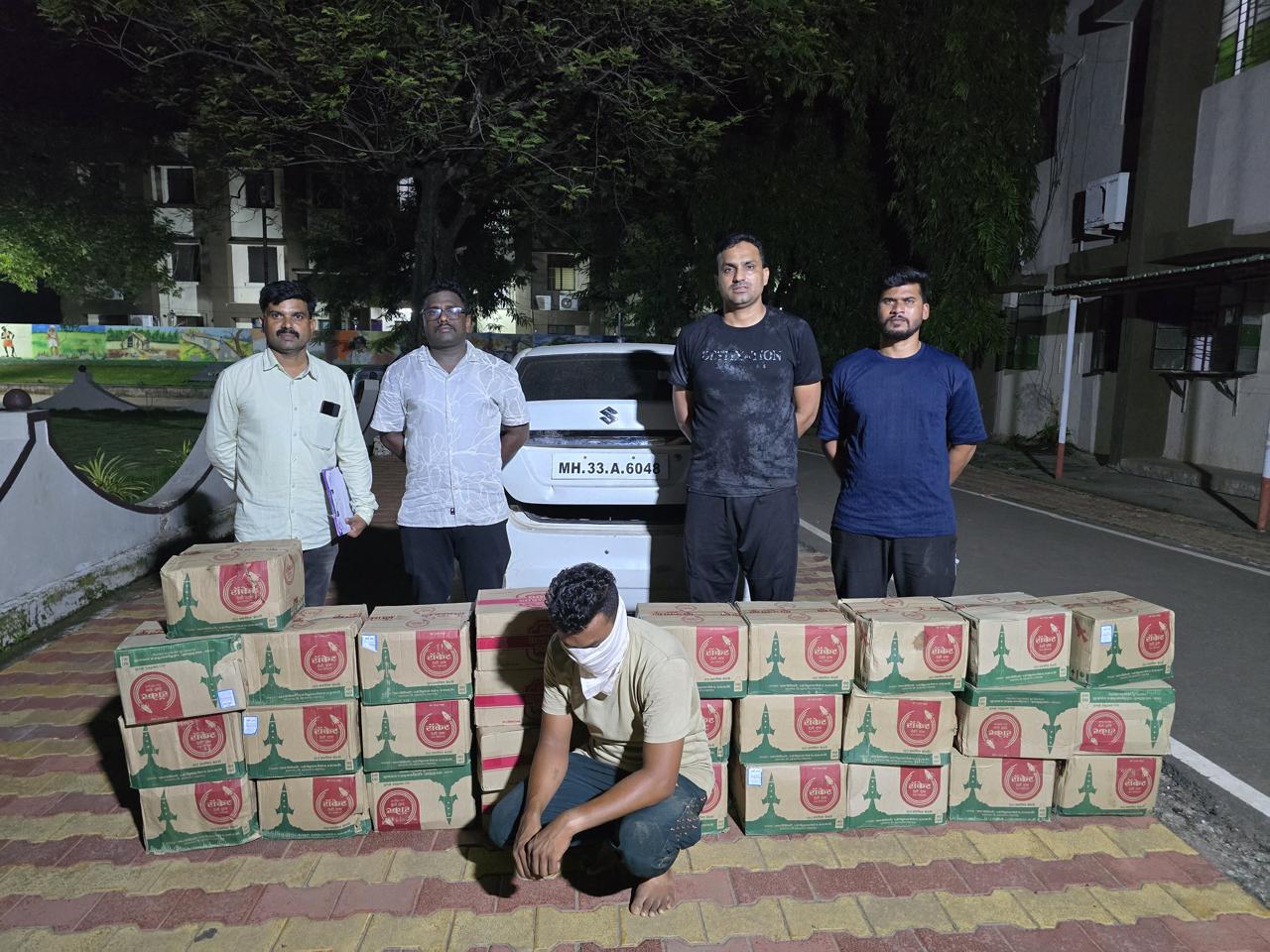 प्राप्त माहितीनुसार मनोज वामन ऊईके रा. शिवणी, ता जि. गडचिरोली हा त्याच्या स्वत:च्या स्विफ्ट या चारचाकी वाहनाने अवैधरित्या देशी- विदेशी दारूची गडचिरोली शहरामध्ये वाहतूक करत आहे, अशी माहिती गोपनीय बातमीदाराकडून पोलिसांना मिळाली. या माहितीवरून स्थानिक गुन्हे शाखेच्या पथकाने गडचिरोली-चामोर्शी रोडवरील सेमाना मंदिराजवळ सापळा रचला असता संशयित चारचाकी वाहन भरधाव वेगाने येताना दिसले. पोलिसांनी या वाहनाला थांबण्याचा इशारा करून रस्त्याच्या कडेला थांबवले. त्यानंतर वाहनाच्या चालकास त्याचे नाव विचारले असता त्याने आपले नाव मनोज वामन ऊईके रा. शिवणी, ता. जि. गडचिरोली असे सांगितले. त्यानंतर वाहन चालकास वाहन अडविण्याचे कारण सांगून पोलिस पथकाने वाहनाची तपासणी केली असता वाहनात २५ पेट्या देशी दारूचे बॉक्स, ४ पेट्या विदेशी बियरचे बॉक्स आढळले. हा मुद्देमाल व एक मारुती सुझुकी कंपनीचे स्विफ्ट चार चाकी वाहन असा एकूण ६ लाख ३८ हजार ८०० रुपयांचा मुद्देमाल कारवाई करून जप्त करण्यात आला. या मुद्देमालाबाबत वाहन चालकाकडे अधिक विचारपूस केली असता हा मुद्देमाल किरण ताटपल्लीवार आणि लंकेस यांच्याकडून घेतला आहे असे त्याने सांगितले. यावरून संबंधीत घटनेच्या अनुषंगाने आरोपी मनोज ऊईके, किरण ताटपल्लीवार व लखन ऊर्फ लंकेस यांच्याविरुद्ध गुन्हा नोंद करण्यात आला आहे. आरोपी मनोज ऊईके याला अटक करण्यात आली. न्यायालयाने त्याला एक दिवसाची पोलिस कोठडी सुनावली आहे. या गुन्ह्याचा पुढील तपास सहायक फौजदार कैलास नरोटे हे करत आहेत. ही कारवाई पोलिस अधीक्षक नीलोत्पल, अपर पोलिस अधीक्षक (अभियान) एम. रमेश, अपर पोलिस अधीक्षक (प्रशासन) गोकुल राज जी. यांच्या मार्गदर्शनात स्थानिक गुन्हे शाखेचे पोलीस निरीक्षक अरुण फेगडे यांच्या नेतृत्वात सहायक पोलिस निरीक्षक भगतसिंग दुलत, पोलिस हवालदार दंडीकवार, पोलिस अंमलदार पंचफुलीवार व कोडाप यांनी पार पाडली.