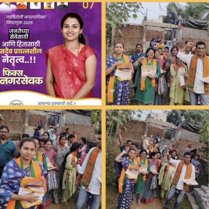 गडचिरोली,ता. २३ : अनेक वर्षांपासून दुर्लक्षित राहिलेल्या अतिदुर्गम, माओवादग्रस्त व उद्योगविहीन गडचिरोली जिल्ह्यावर केंद्र व राज्य सरकारची २०१४ पासून कृपादृष्टी झाल्यामुळेच जिल्ह्यात वेगाने विकास होत आहे. अशात गडचिरोली नगर परीषदेच्या माध्यमातून गडचिरोली शहराच्या विकासात योगदान देण्यासाठी प्रभाग क्रमांक ७ चे नेतृत्व करण्यासाठी भूमिता योगेश रणदिवे सज्ज झाल्या आहेत. त्या घरोघरी भेटी घेत असून जनतेकडून त्यांचे उत्स्फूर्त स्वागत होत आहे.