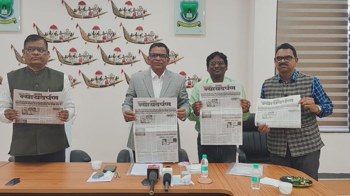 गडचिरोली प्रतिनिधी, ता. १९ : गोंडवाना विद्यापीठ, गडचिरोली येथे ‘अखंड न्यायदर्पण’ या वृत्तपत्राचे विमोचन मा. कुलगुरू डॉ. प्रशांत बोकारे यांच्या हस्ते करण्यात आले.