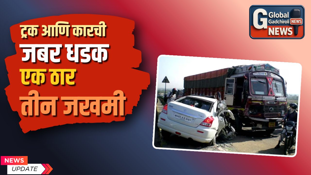 जखमी झालेल्यांमध्ये अमोल देशपांडे (वय ४०), कुणाल मुळके (वय २८, रा. कोटगल, ता. गडचिरोली) आणि योगेश वरखडे (वय ४८. रा. नागपूर) याचा समावेश आहे. विनोद कुमरे है या तिघांसह कार (एमएच ०२ बीआर ४९९९) ने आष्टीहून गडचिरोलीकडे परतत होते, तर ट्रक (एमएच ३४ बीडीड-१३३०) चामोर्शीकडून आष्टीकडे जात होता. जामगिरीजवळ भरधाव ट्रकने कारला समोरासमोर धडक दिली. या भीषण अपघातात कुमरे गंभीर जखमी झाले. त्यांना तातडीने ग्रामीण रुग्णालयात उपचारासाठी दाखल करण्यात आले. परंतु डॉक्टरांच्या शर्थीच्या प्रयत्नांनंतरही त्यांची प्राणज्योत मालवली. इतर तीन जखमींची प्रकृती स्थिर आहे.चामोर्शीचे पोलिस निरीक्षक दीपक डॉब यांनी सांगितले की, ट्रकचालक ताब्यात असून, अपघाताबाबत सखोल तपास सुरू आहे.