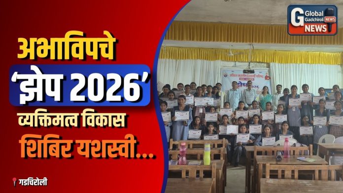गडचिरोली (Gadchiroli), ता . १८ : अखिल भारतीय विद्यार्थी परिषद (अभाविप), गडचिरोली यांच्या वतीने आयोजित ‘झेप २०२६’ व्यक्तिमत्व विकास शिबिर दि. १८/०४/२०२६ रोजी उत्साहात पार पडले. या शिबिरात विद्यार्थ्यांच्या सर्वांगीण विकासासाठी विविध मार्गदर्शनपर सत्रांचे आयोजन करण्यात आले.