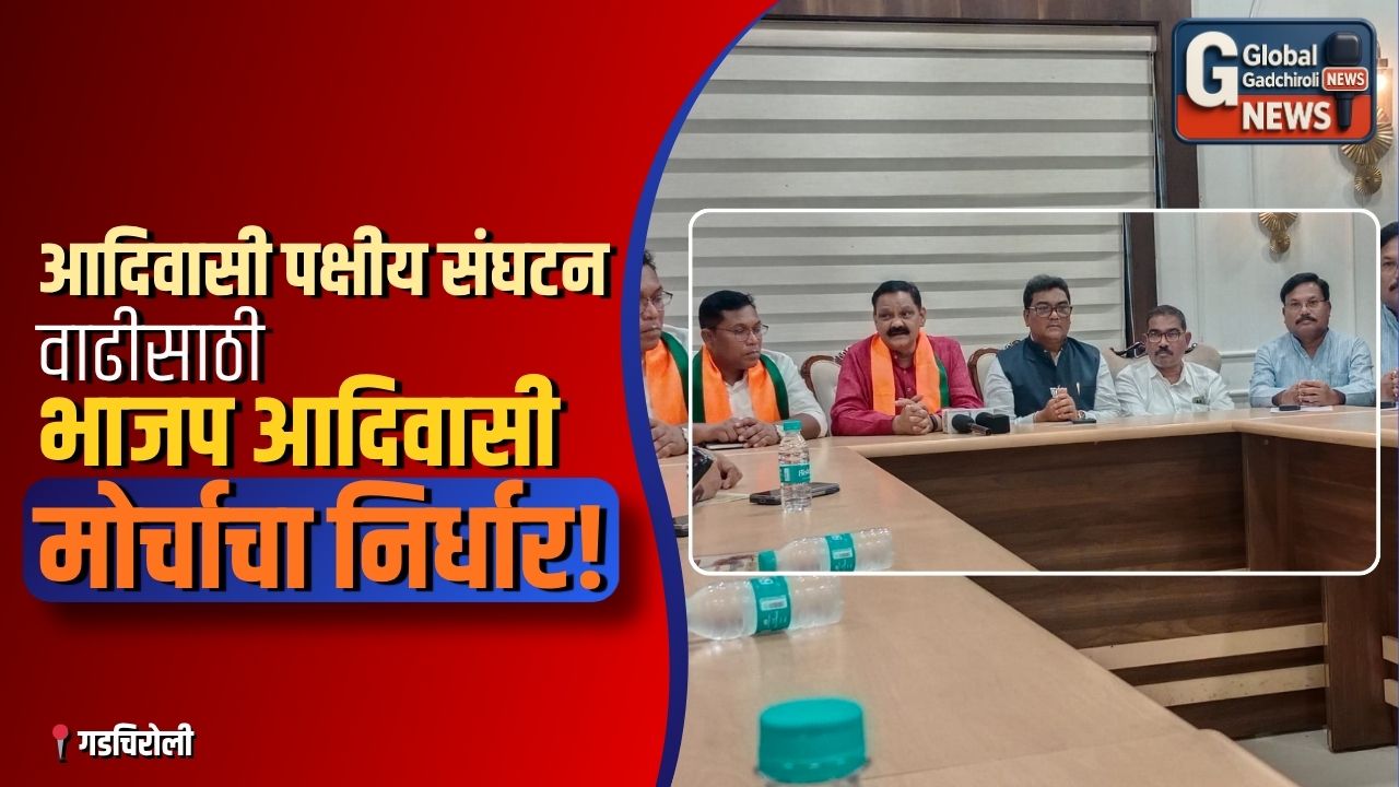 गडचिरोली (Gadchiroli), दि. २५ एप्रिल २०२६ — भारतीय जनता पार्टीच्या आदिवासी मोर्चाच्या वतीने गडचिरोली येथील सर्किट हाऊस येथे आयोजित पत्रकार परिषदेत आदिवासी समाजाच्या सर्वांगीण विकासाबरोबरच पक्षीय संघटन बळकटीकरणावर विशेष भर देण्यात आला. या परिषदेला राज्याचे आदिवासी विकास मंत्री डॉ. अशोक उईके यांची प्रमुख उपस्थिती होती. तसेच आदिवासी मोर्चाचे प्रदेशाध्यक्ष व माजी आमदार डॉ. देवराव होळी, आमदार डॉ. मिलिंद नरोटे, भाजपा जिल्हाध्यक्ष प्रा. रमेश बारसागडे, माजी आमदार डॉ. नामदेव उसेंडी, आदिवासी मोर्चा जिल्हाध्यक्ष डॉ. नितीन कोडवते यांच्यासह पदाधिकारी व कार्यकर्ते मोठ्या संख्येने उपस्थित होते.
