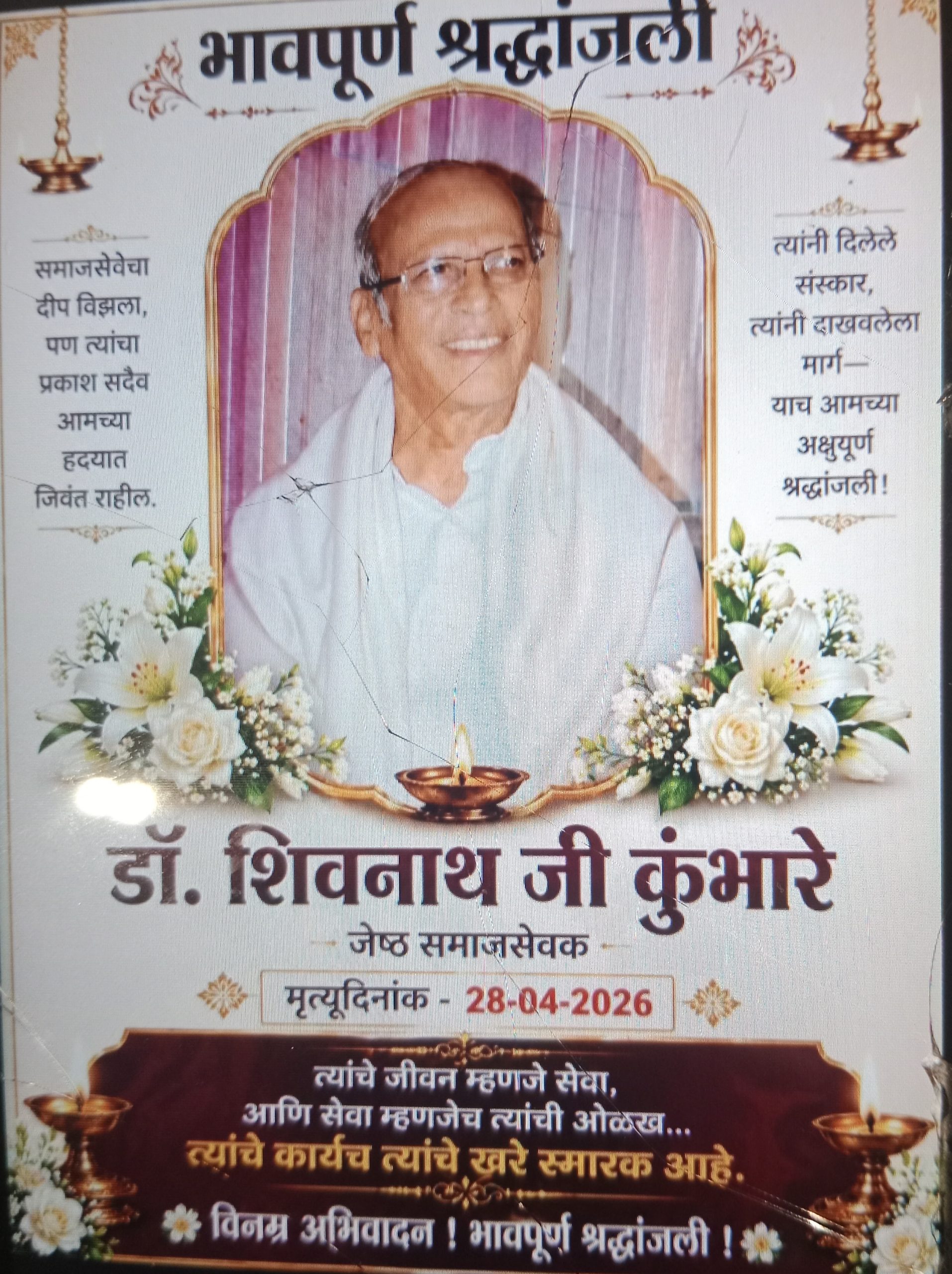 डॉ. शिवनाथ कुंभारे हे अखिल भारतीय श्रीगुरुदेव सेवा मंडळाचे माजी जिल्हा सेवाधिकारी होते. मनमिळावू स्वभाव, निस्वार्थ वृत्ती आणि कार्यतत्परता यामुळे त्यांनी समाजात वेगळी ओळख निर्माण केली होती. राष्ट्रसंत तुकडोजी महाराजांच्या परिवर्तनवादी व मानवतावादी विचारांचा प्रसार करण्यासाठी त्यांनी आयुष्यभर अविरत प्रयत्न केले. त्यांनी कर्मयोगी तुकारामदादा गीताचार्य (अड्याळ टेकडी) तसेच पद्मश्री अण्णा हजारे (राळेगण सिद्धी) यांच्या सोबत अनेक वर्षे सामाजिक कार्यात सहभाग घेतला. दुर्गम व नक्षलग्रस्त आदिवासी भागात जाऊन त्यांनी लोकसेवेचे व्रत जपले आणि असंख्य गरजू लोकांना आधार दिला. वैद्यकीय सेवेबरोबरच लोककल्याणासाठी त्यांनी आयुष्य वेचले. डॉ. शिवनाथ कुंभारे हे केवळ डॉक्टर नव्हते, तर ते गरिबांचे खरे सेवक होते. “समाजसेवा ही बोलण्यातून नाही, तर कृतीतून करायची असते” हे त्यांनी आपल्या आयुष्यभराच्या कार्यातून दाखवून दिले. त्यांच्या दवाखान्यात गरीब, गरजू आणि आजारी लोकांना अत्यल्प शुल्कात किंवा अनेकदा मोफत उपचार मिळत असत. त्यामुळे गडचिरोली जिल्ह्यातील असंख्य कुटुंबांसाठी त्यांचे हॉस्पिटल आशेचे केंद्र ठरले होते. गडचिरोली येथे पार पडलेल्या राज्यस्तरीय राष्ट्रसंत साहित्य विचारकृती संमेलनाचे ते स्वागताध्यक्ष होते. तसेच राष्ट्रसंत विचार साहित्य परिषद, गडचिरोली सायकल स्नेही मंडळ, भ्रष्टाचार विरोधी जनआंदोलन समिती, झाडीबोली साहित्य मंडळ, गडचिरोली जिल्हा दारूबंदी आंदोलन आणि महाराष्ट्र अंधश्रद्धा निर्मूलन समिती यांसारख्या संस्थांमध्ये त्यांनी मोलाचे योगदान दिले. त्यांच्या पश्चात एक मुलगा डॉ. अनंता कुंभारे, सुन, तीन मुली, जावई, नातवंडे आणि मोठा आप्तपरिवार असा परिवार आहे. त्यांच्या पार्थिवावर मंगळवारी सायंकाळी ६ वाजता गडचिरोली येथील कठाणी नदी घाटावर अंत्यसंस्कार करण्यात येणार आहेत. डॉ. शिवनाथ कुंभारे यांच्या निधनाने गडचिरोली जिल्ह्याने एक निस्वार्थी, सेवाभावी आणि प्रेरणादायी व्यक्तिमत्व गमावले आहे.